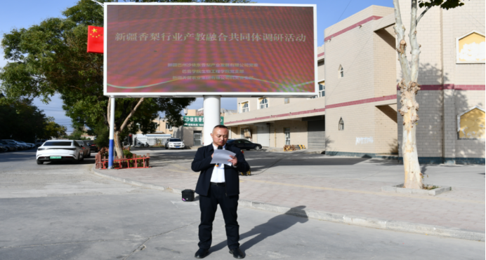 为持续推进党建与业务工作深度融合,充分发挥党组织战斗堡垒作用和党员先锋模范作用,10月18日,巴音郭楞职业技术学院(以下简称巴音学院)生物工程学院党支部联合新疆巴州沙依东香梨产业发展有限公司(以下简称沙依东公司)党委、新疆天苗农业集团有限公司(以下简称天苗集团公司)机关党支部开展10月党旗映天山“校企合作谋新篇·产教融合促发展”主题党日活动,生物工程学院党支部全体党员及师生代表、新疆天苗农业集团有限公司党支部党员代表、新疆巴州沙依东香梨产业发展有限公司党支部党员代表参加本次活动。