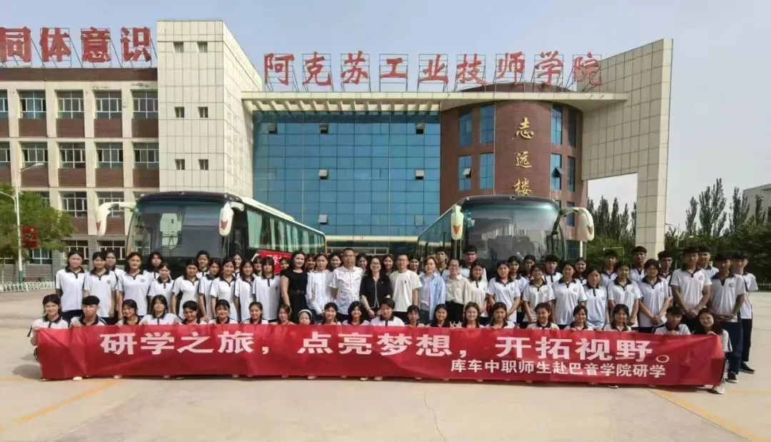 5月23日,正值全国职业教育活动周期间,阿克苏地区库车中等职业技术学校党委委员、副校长江雪娜,加工制造教学部党支部书记、主任王续堂带领5名教师及61名学生赴巴音郭楞职业技术学院开展校际交流活动。巴音郭楞职业技术学院纺织服装学院党支部副书记、院长丁盛,副院长王庆全程陪同参观。