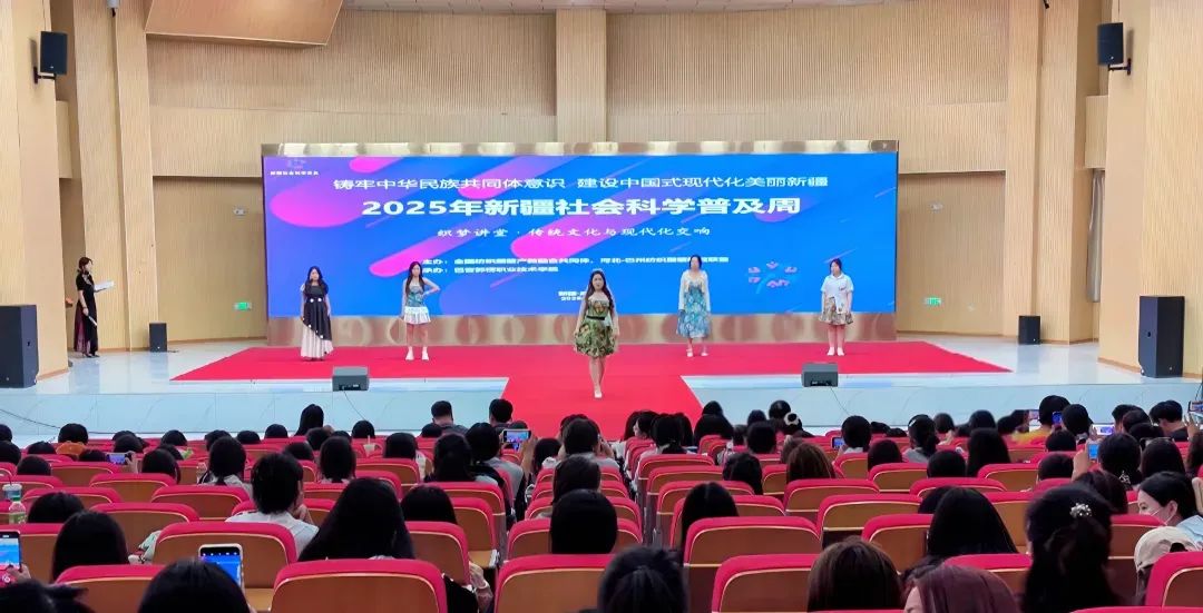 在产教融合示范园,库车中等职业技术学校师生共同观看了由纺织服装学院主办的“铸牢中华民族共同体意识 建设中国式现代化美丽新疆”——2025年新疆社会科学普及周活动“织梦讲堂·传统文化与现代化交响”传统服饰走秀专场活动?;疃苑挝浇?,将新疆传统文化元素与现代设计理念融合,生动展现了职业教育在文化传承与创新发展中的独特价值。